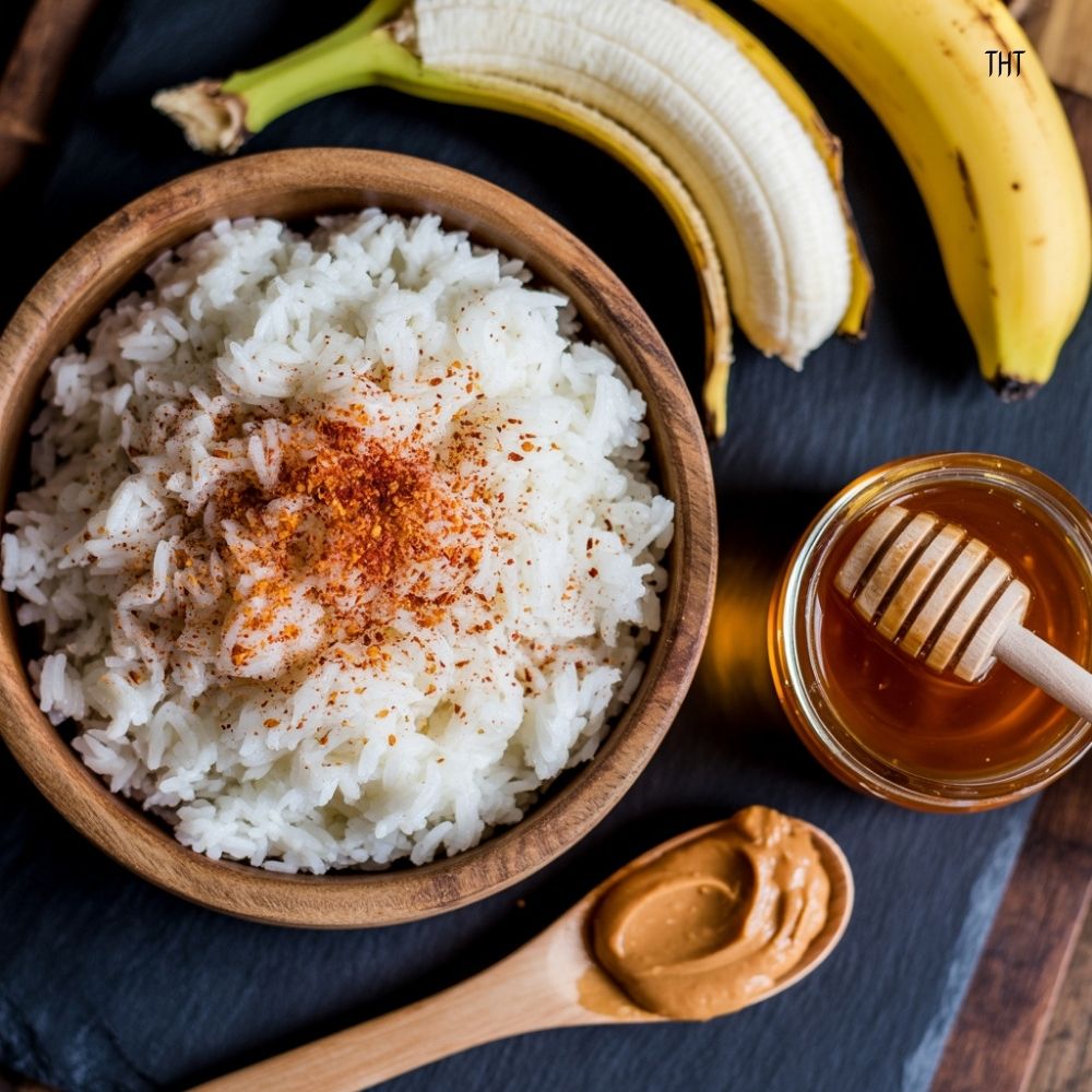 Rice Cake with Peanut Butter, Banana, and Chili Honey